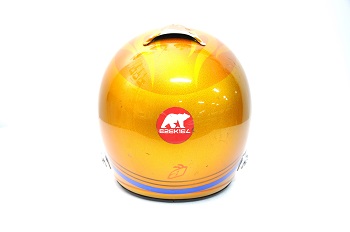 THIS HELMET FEATURES TOP AND BOTTOM AIR VENTS, A CLEAR VISOR, HANS DEVICE ANCHOR POSTS AND A RADIO WIRE CLIP.