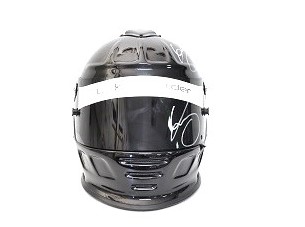 THIS HELMET FEATURES A TINTED VISOR, A TOP AIR PORT, BOTTOM AIR VENTS, A RADIO WIRE CLIP AND HANS DEVICE ANCHOR POSTS.