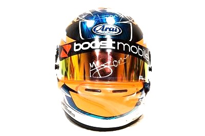 MACAULEY WORE THIS HELMET WHILST DRIVING FOR BRAD JONES RACING IN 2017.