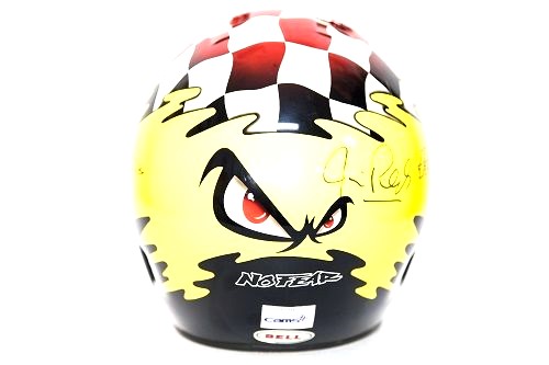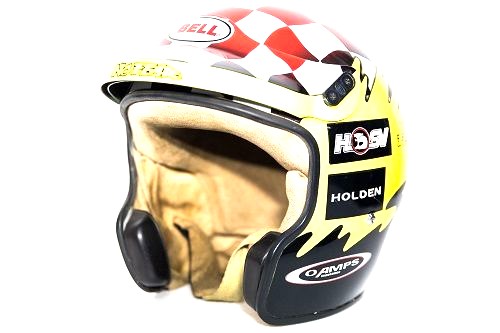 JIM WORE THIS HELMET WHILST DRIVING FOR FORD PERFORMANCE RACING IN 2001 AND 2002 FOR THE HOLDEN RACING TEAM .
