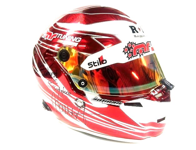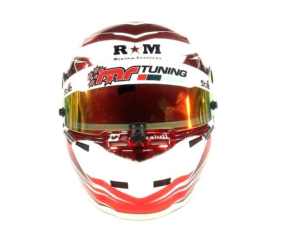 THIS HELMET FEATURES A TINTED VISOR, TOP AND BOTTOM AIR VENTS AND HANS DEVICE ANCHOR POSTS.