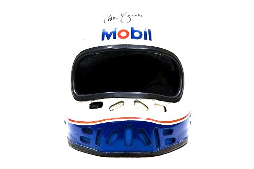 PETER WORE THIS HELMET WHILST DRIVING FOR THE MOBIL HOLDEN DEALER TEAM IN 1985.