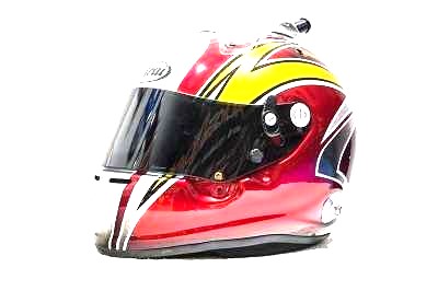RUSSELL WORE THIS HELMET WHILST DRIVING FOR SUPERCHEAP AUTO RACING IN 2012.