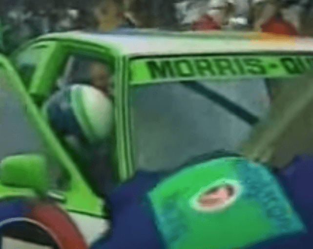 AND ALSO BOB MORRIS RACING IN 1980. THE HELMET FEATURES A PEAK.