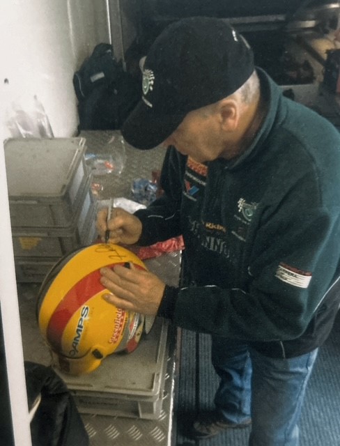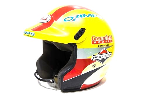 JIM WORE THIS HELMET WHILST DRIVING FOR THE HOLDEN RACING TEAM IN 2002 AND 2003 .